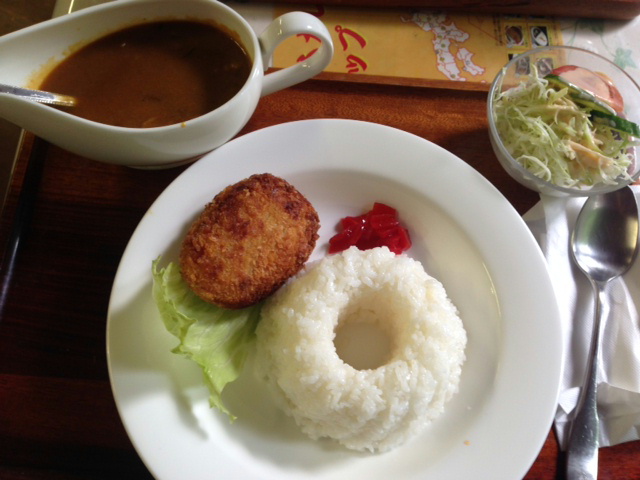 きのこたっぷり、やさしいお味のカレーと、一緒についているコロッケもまたホクホクでおいしいです!! | 100-28-1.jpg |