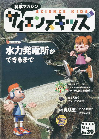 ダム学習塾 キッズコーナー □ 『サイエンスキッズ №39』(水力発電所ができるまで) □ 東京電力㈱立地地域部広報グループ発行の科学マガジン『サイエンスキッズ №39(2006冬号)』に『水力発電所ができるまで」という記事がありますので、ご紹介しますね。ダムのつくりかたもよくわかるよ。 表紙 サイエンスキッズは東京電力㈱立地地域部広報グループが出している子供向けの科学マガジンなんだ。 2006年冬号には「水力発電所ができるまで」という記事が出ている。ダムの種類やダムができるまで、そして水力発電所ができるまでがわかりやすく出てるぞ。 サイエンスキッズを毎号読みたい人は、次のところにハガキを出してね。 〒100-8560 東京都千代田区内幸町1-1-3 東京電力㈱立地地域部広報グループ 「サイエンスキッズ郵送希望」、それから、 「住所、氏名、年齢、電話番号」も書いてね。 ←クリックすると、大きくなるよ。 ↓ 1~2ページ 3~4ページ トップページ